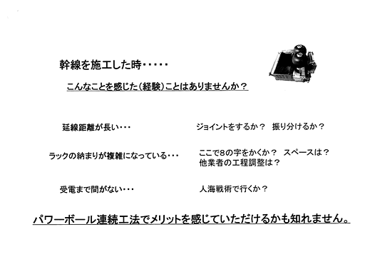 パワーボールによる幹線ケーブ延線の省力化・作業効率化・安全化